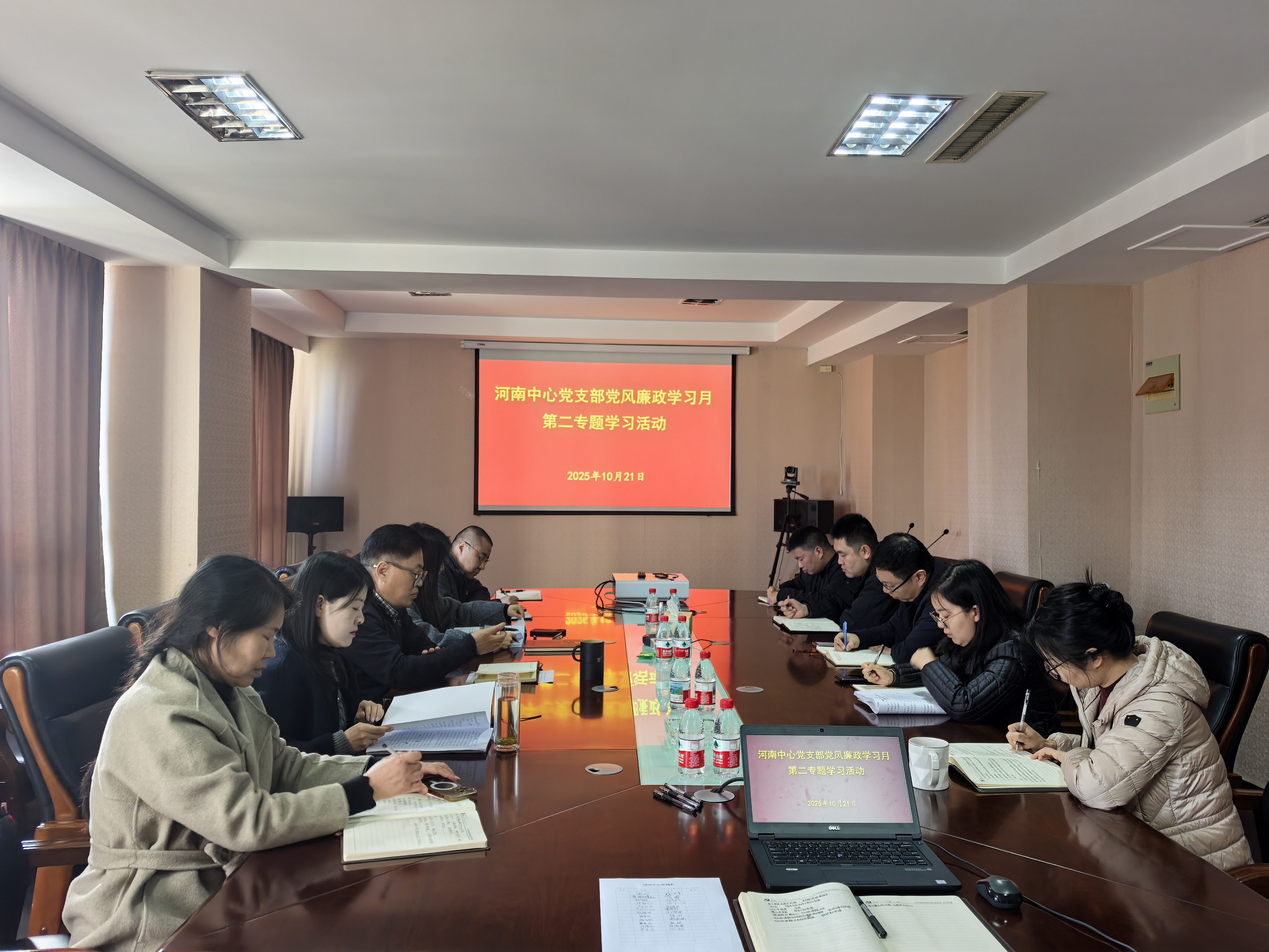为持续深化全面从严治党要求,切实筑牢党员、干部职工拒腐防变的思想根基,筑牢拒腐防线,10月21日,河南中心党支部开展“党风廉政学习月”第二专题学习活动。活动由中心党支部书记王丹丹主持,中心党员、干部参加活动,1人请假。